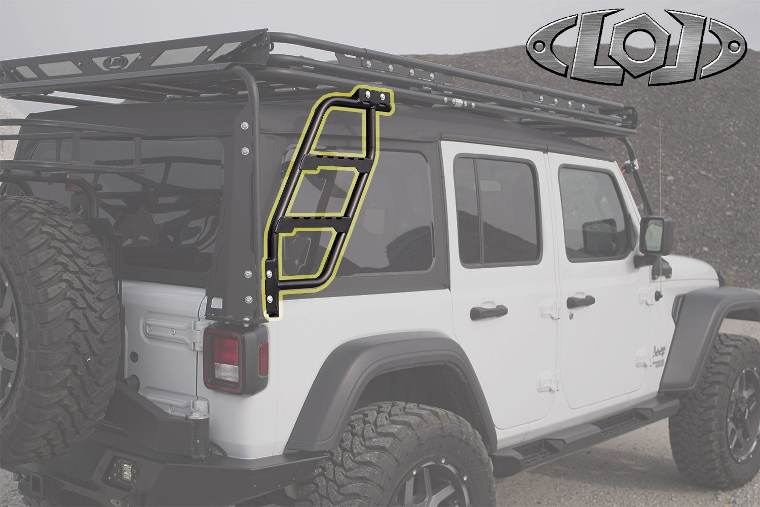 JK / JL Destroyer Roof Rack Drivers Side Ladder. This Bolt-on Drivers Side Ladder will fit all Destroyer Roof Racks and can be added to the LoD Destroyer Base Base Roof rack at any time! Powder Coated texture black for a durable long lasting finish.