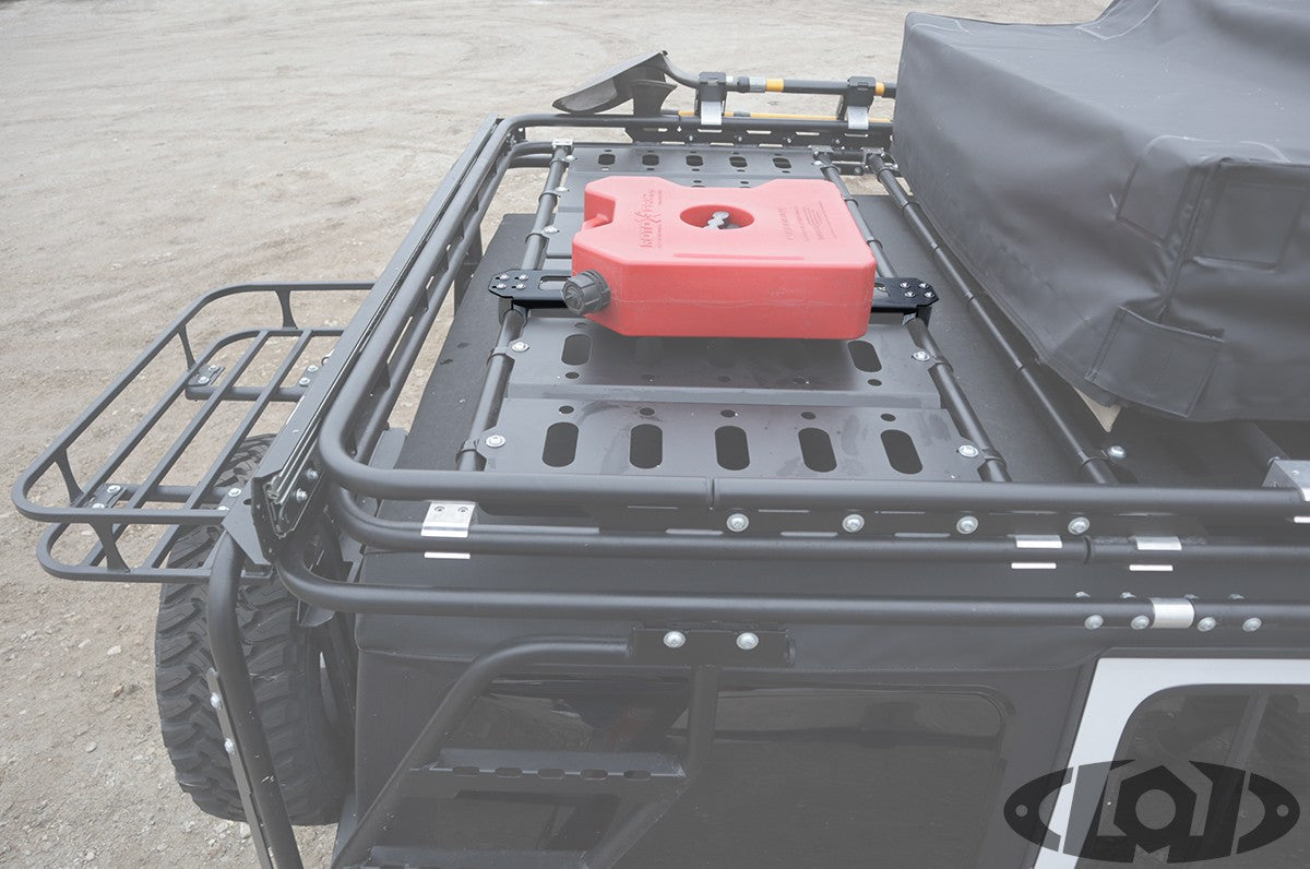 Destroyer Roof Rack Rotopax Mount for JK / JL. This clamp on Rotopax Mount will fit all Destroyer Roof Racks and can be added to the LoD Destroyer Base Roof Rack at any time! Powder Coated texture black for a durable long lasting finish.