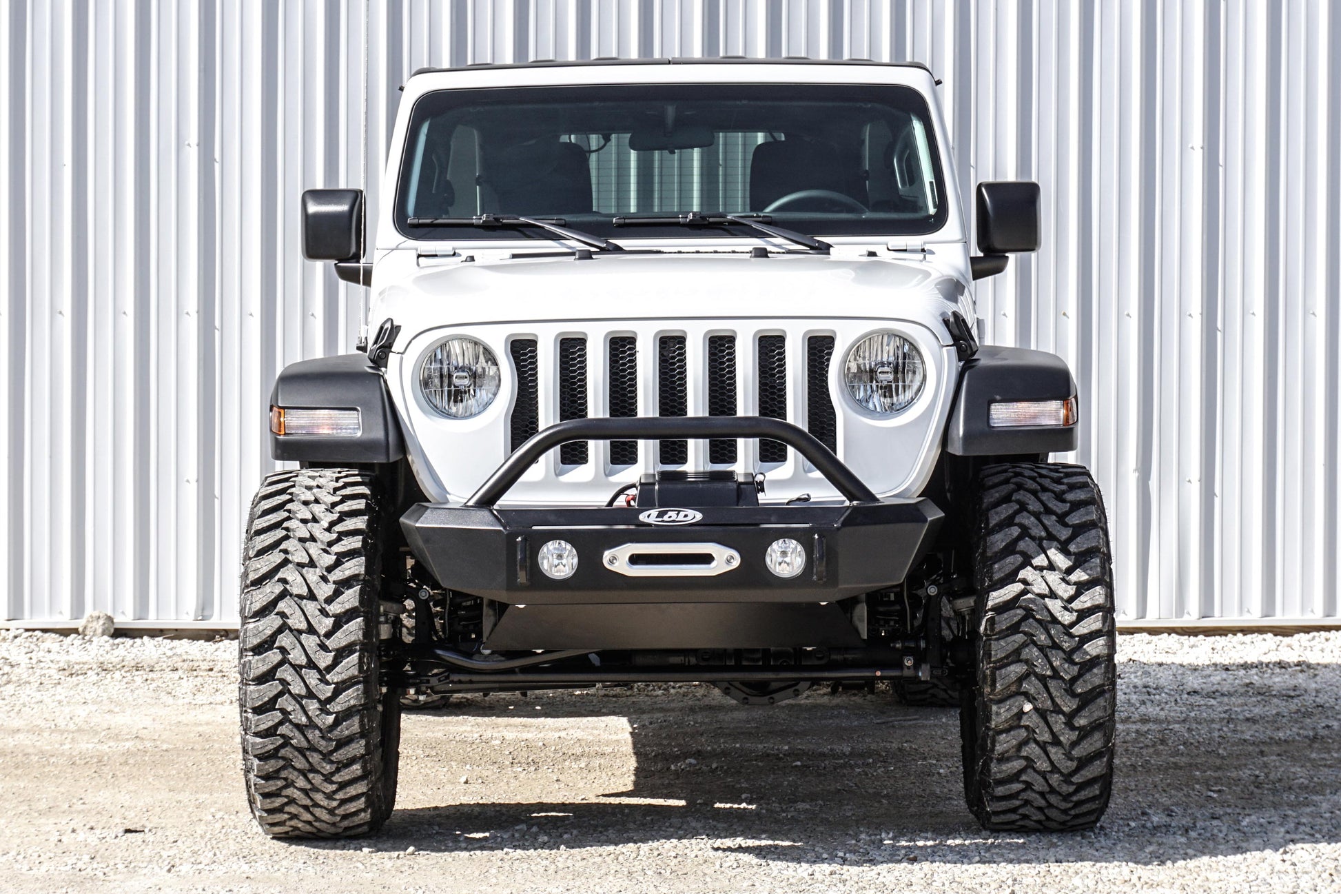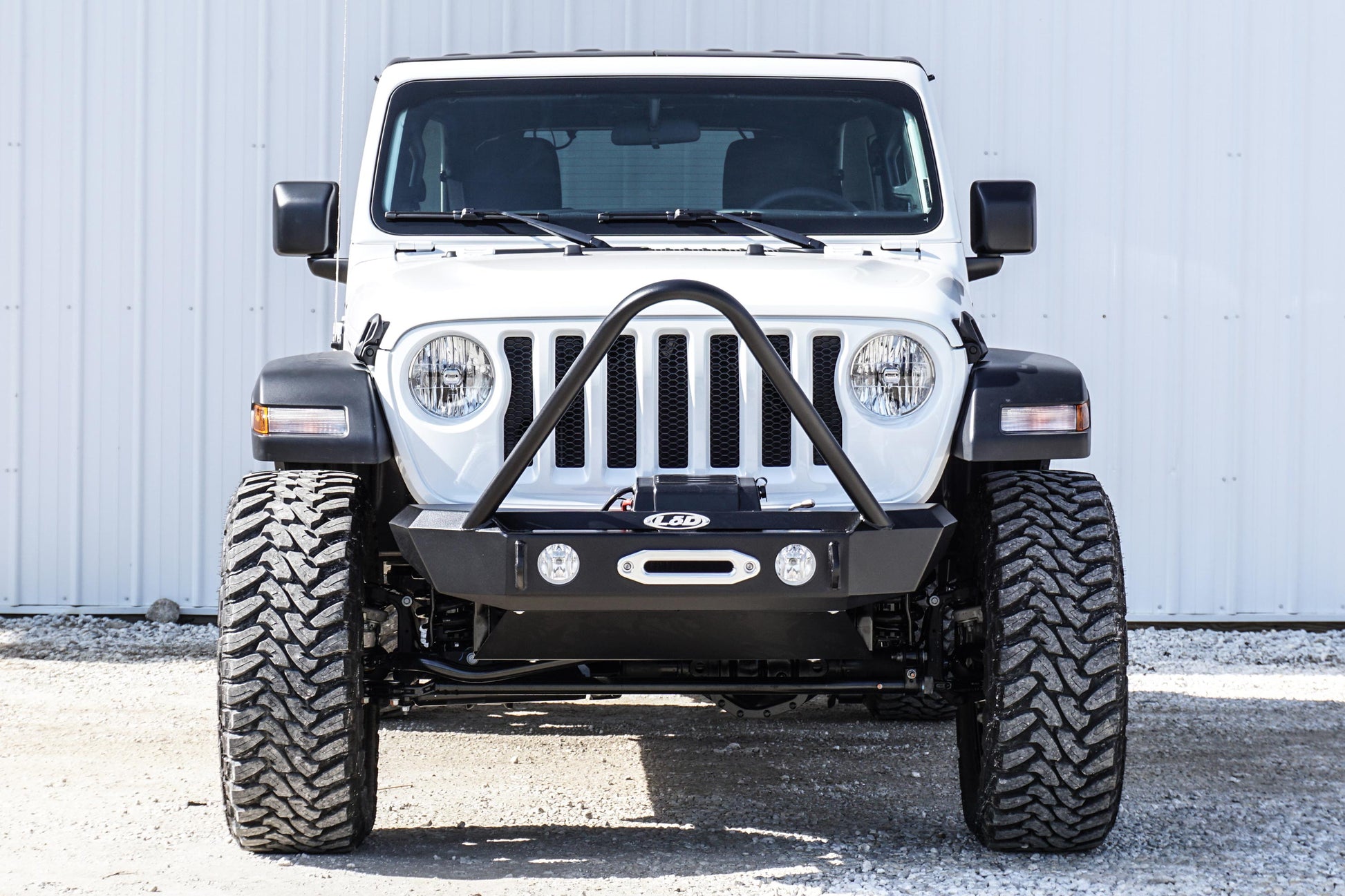The LoD Signature Series Shorty is constructed of 10 gauge, 3/16", and 1/4" steel. The bumper comes standard with a winch mounting plate. The winch plate is designed to accept many of the popular winches including the Warn Powerplant. This bumper was designed to accept the factory fog lights, and to allow the winch to sit between the frame rails for added protection and improved air flow. If the fog lights were not an option on your Jeep it's no problem, as we also offer a 55 watt halogen fog light kit. If our kit is purchased, we will make the necessary changes to accommodate our lights. Also optional on this bumper is a guard that comes standard with two auxiliary light mounting tabs.