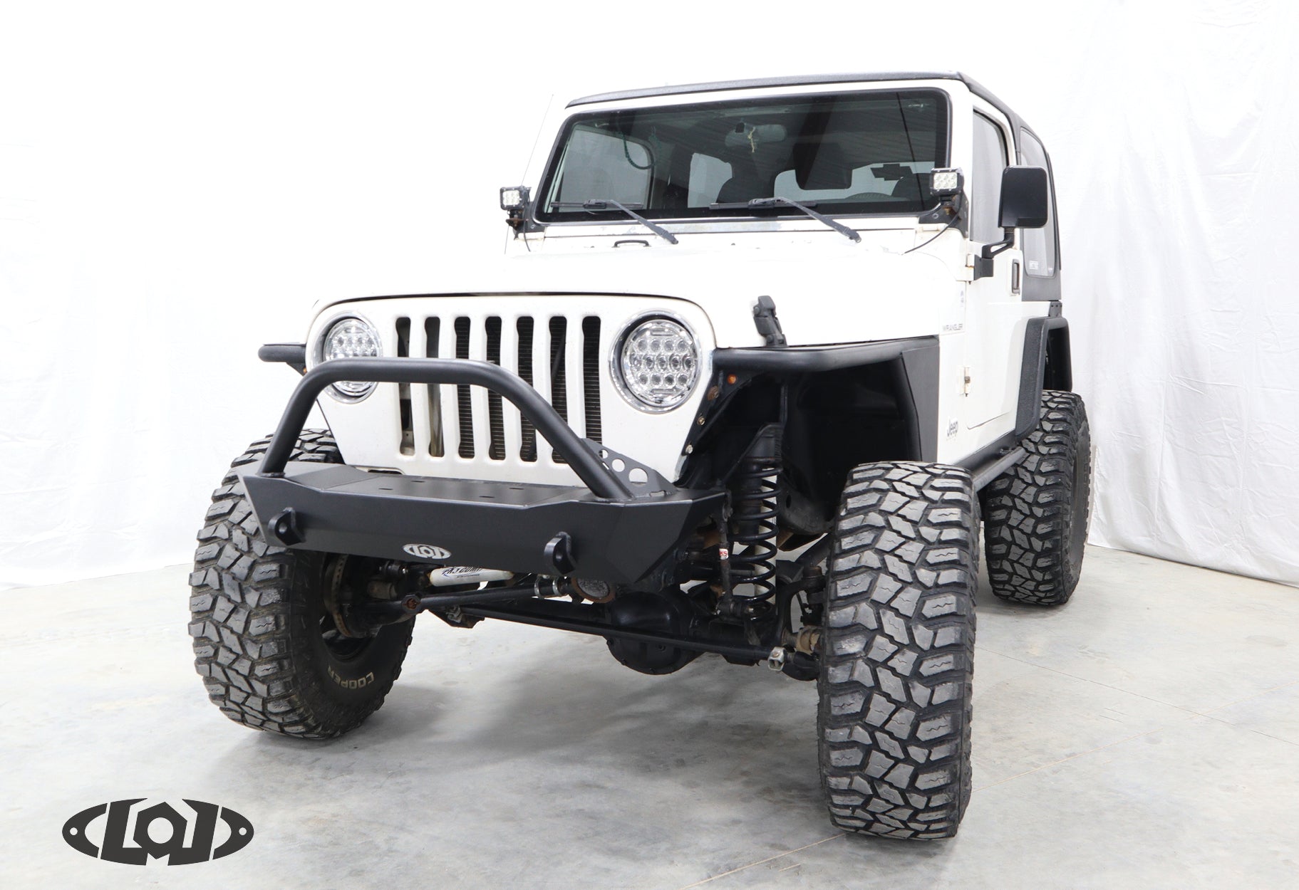 New Jeep Wrangler TJ/LJ/YJ Destroyer Shorty Front Bumpers are engineered to a higher level. The stealthy look and versatile functionality makes a bold statement while protecting and enhancing your off road Jeep on the trail. Winch ready with increased features allow you to customize your Jeep like never before! Better look, higher quality, and more options!